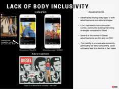 I selected the retailer Diesel because though their advertising pertains to their current target market, it prevents them from gaining new brand loyal consumers and may even ruin their image towards current consumers. I found that that their marketing was overly sexual, inappropriate and there was a lack of body inclusivity. I created three advertisement mock-ups that presented a more ethical point of Diesel's view.
